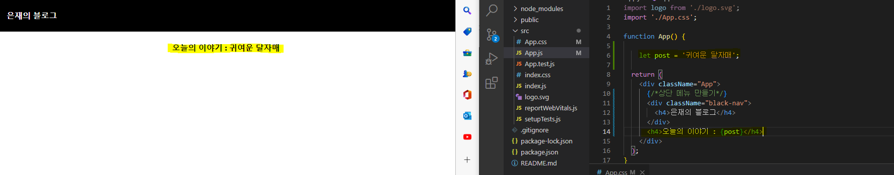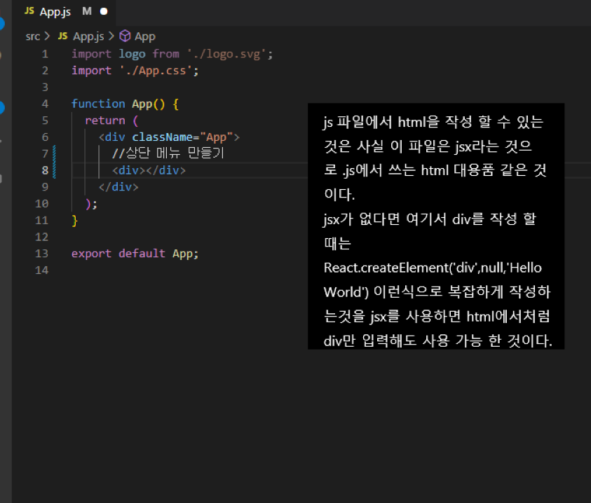 그리고 jsx에서 div에 class명을 선언 할 때는 그냥 class=""가 아니라