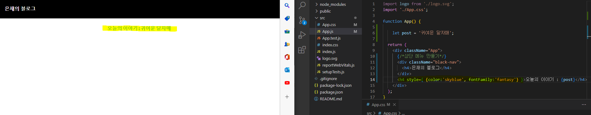 *** 참고 : css 파일을 쓰려면 상단에 import로 'css 파일경로' 를 작성 해 줘야 한다.