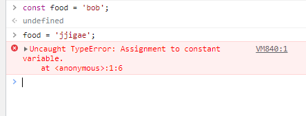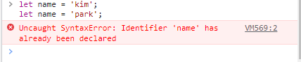 재선언 하려고 하면 에러가 발생하는것을 볼 수 있다.