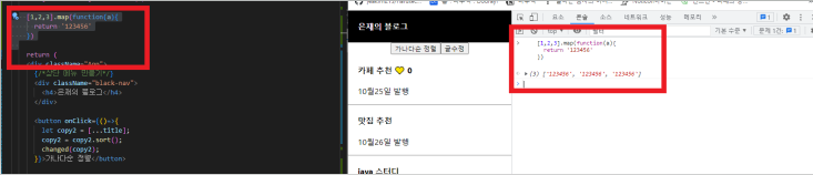 [1,2,3].map(function(){ 코드~~ })array 뒤에 .map()을 붙여주고 뒤에 콜백함수 function()을 붙여주면