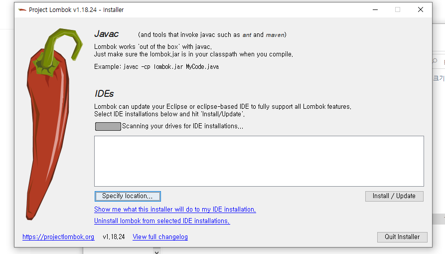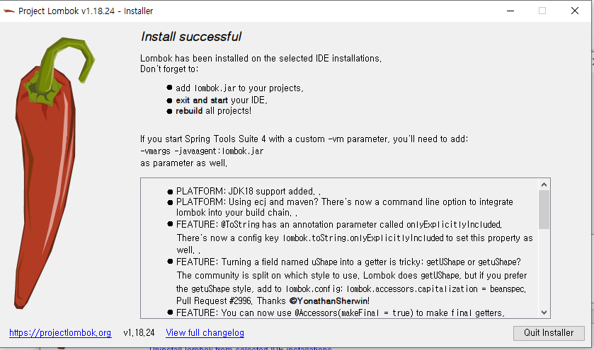 compileOnly 'org.projectlombok:lombok:1.18.24' annotationProcessor 'org.projectlombok:lombok:1.18.24' testCompileOnly 'org.projectlombok:lombok:1.18.24' testAnnotationProcessor 'org.projectlombok:lombok:1.18.24'이걸 추가 후 저장 해 주고 gradle refresh 후 어노테이션을 import해서 사용 할 수 있게 된다.