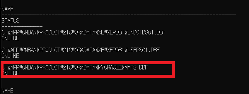 SELECT NAME, STATUS FROM v$datafile;