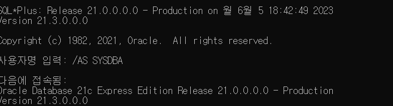 우선 SQL PLUS에서 /AS SYSDBA로 접속