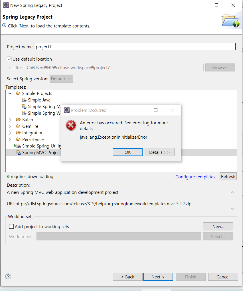 금요일부터 계속 legacy project 생성 해 줄려고 하면 에러가 발생 했다.