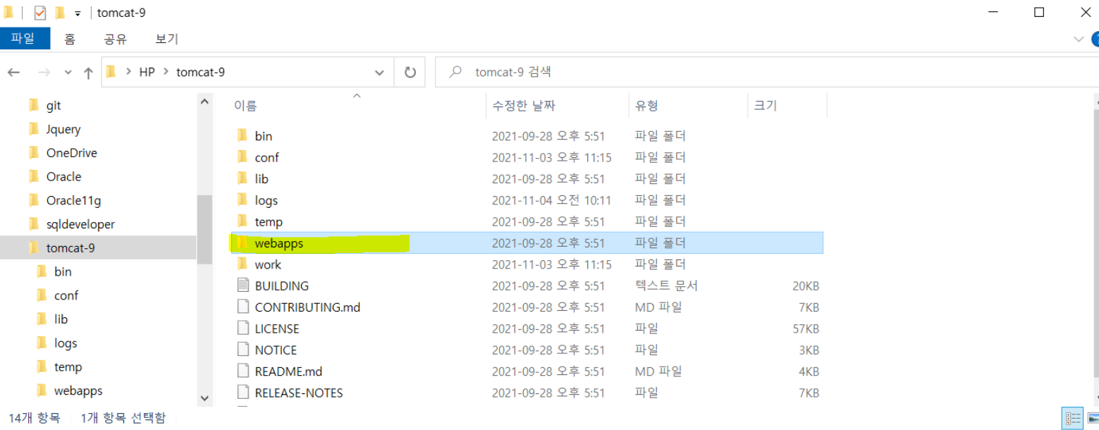 HTML/CSS/JavaScript/JSP 등등 어플리케이션을 앞으로 여기에 넣어 줄 것이다.