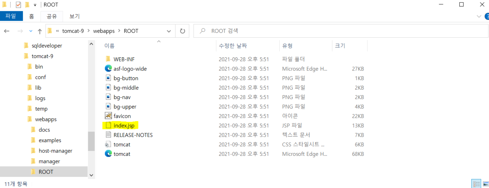 index.jsp는 아까 열어 둔 톰캣 화면이다.