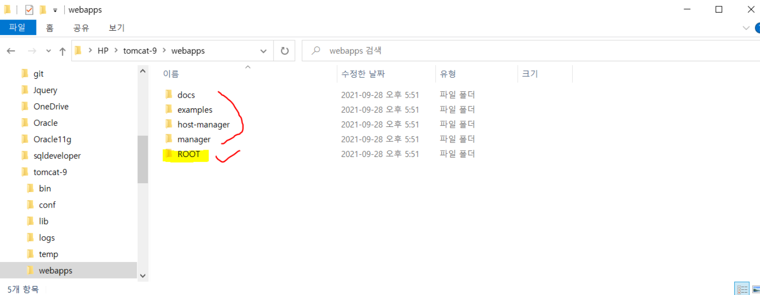 ROOT가 메인프로젝트이고 나머지들은 톰캣에서 제공하는 것이니깐 건들이지 말 것
