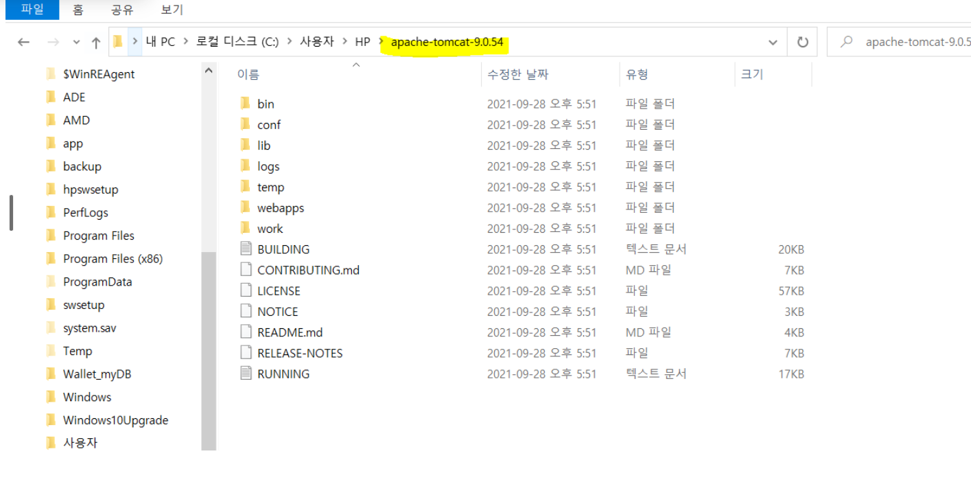 (압출 풀 때 자주 사용하는 디렉토리에 바로 풀어줘도 된다.)