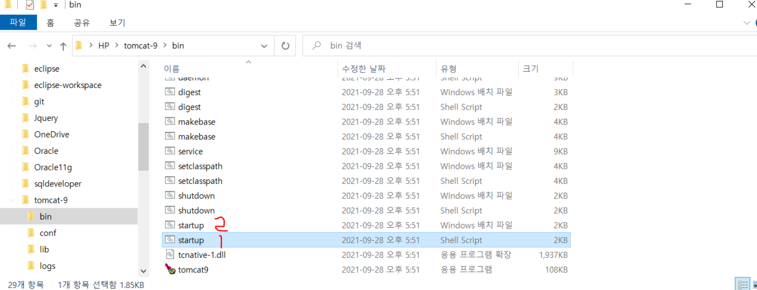 5.bin → strat.bat (혹은 그냥 start window배치파일) 을 더블클릭 해 준다.