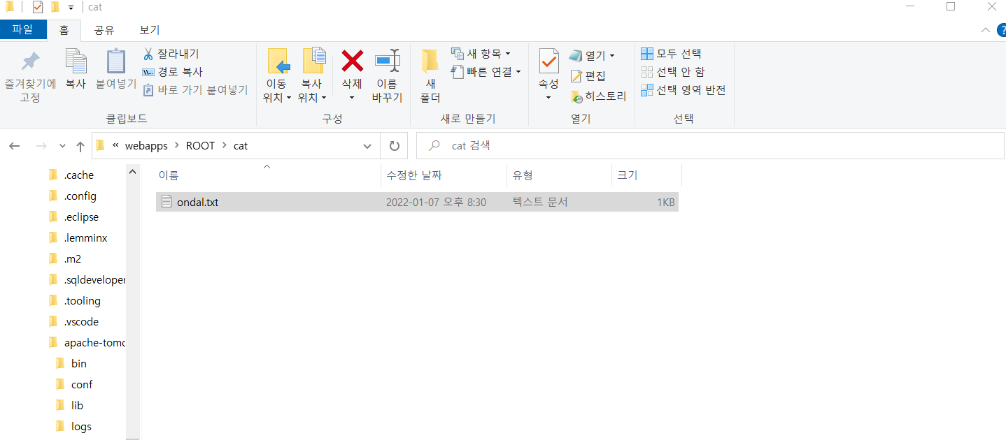 tomcat->webapp->ROOT->cat 안에 있는 ondal이라는 파일을 tomcat으로 요청 해 보자
