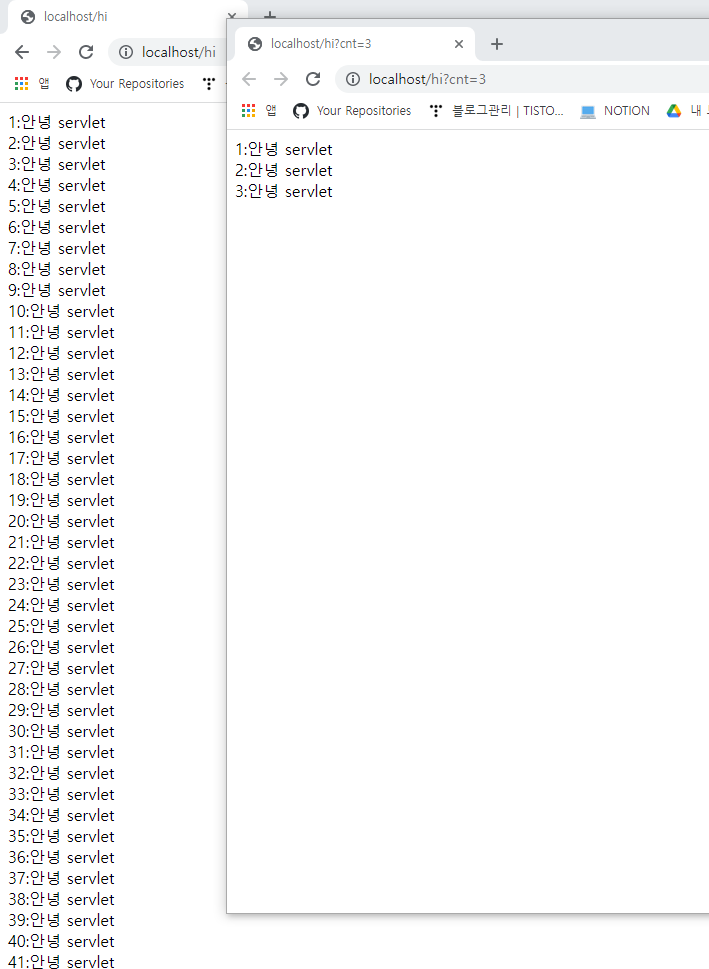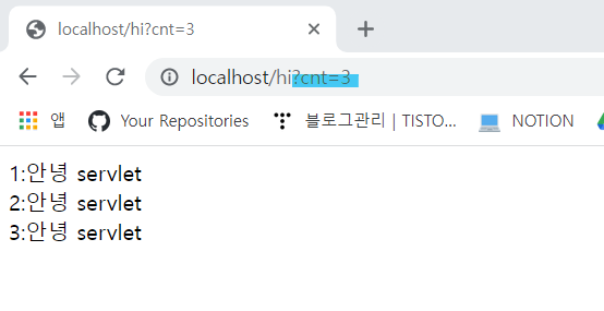 http://localhost/hello?cnt=3 이것은
