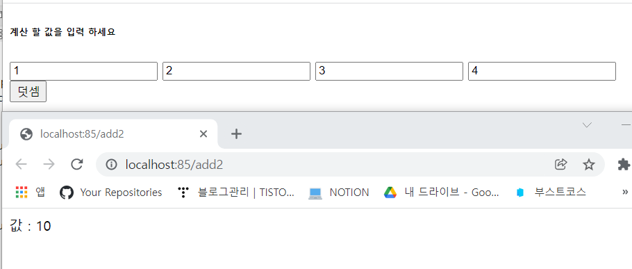 action 값을 add2로 바꿔주고 기존에 각각 다르게 설정했던 name값을 같은 이름으로 동일하게 지정해준다.