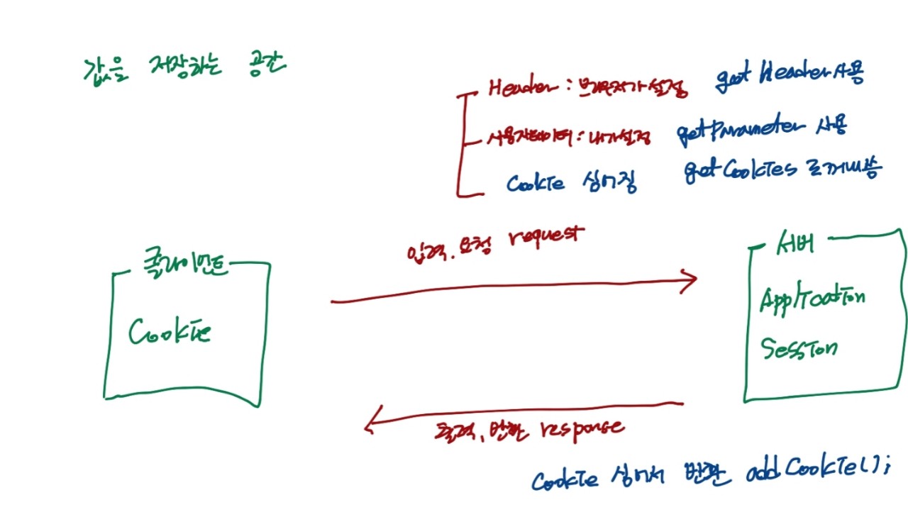 값을 저장 하는 공간은 이렇듯 세가지가 있는데 서버쪽에는 application, session이 있고 클라이언트 쪽에는 cookie가 있게 된다. 각각 저장공간의 특징을 이해해서 적절하게 서버에 둘 것인지 클라이언트에 둘 것인지를 결정 하면 된다.