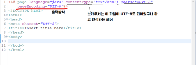 HTML문서를 출력 할 경우에 JSP 파일을 만드는거기때문에 기본적인 HTML 코드는 작성되어서 만들어진다.