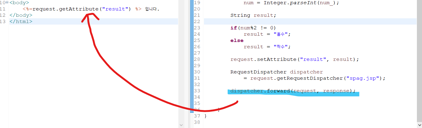 뷰에서는 request.getAttribute("cnt", 30); 라고 자바 코드블럭을 이용해서 길게 작성 해 주어야 했다.