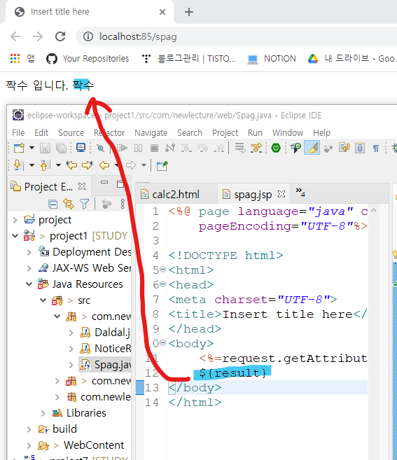 EL 코드 안에 result를 작성했더니 result 값이 출력 되는 것을 확인 할 수 있다.