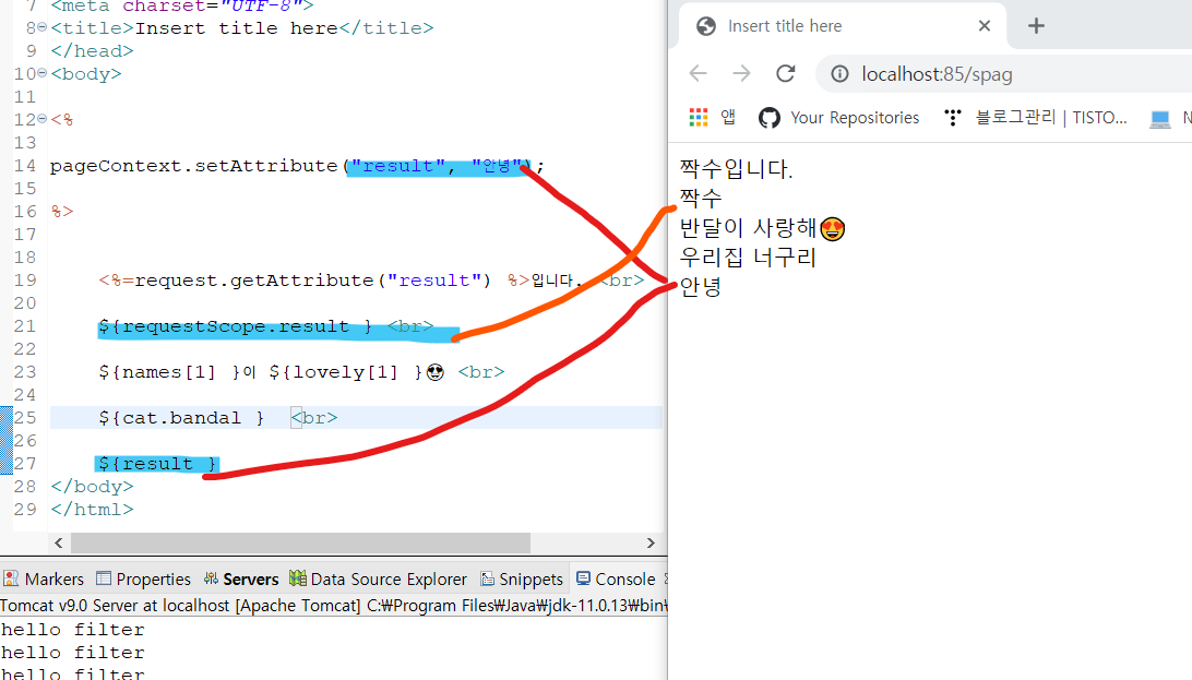 JSP-게시판 인덱스 코드블럭으로 만들기 (0) 2022.01.26 EL 연산자 (0) 2022.01.24 EL(Expression Language) (0) 2022.01.24 jsp mvc model2 (0) 2022.01.24 JSP MVC model1 (0) 2022.01.23