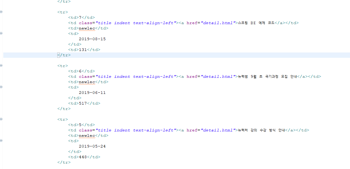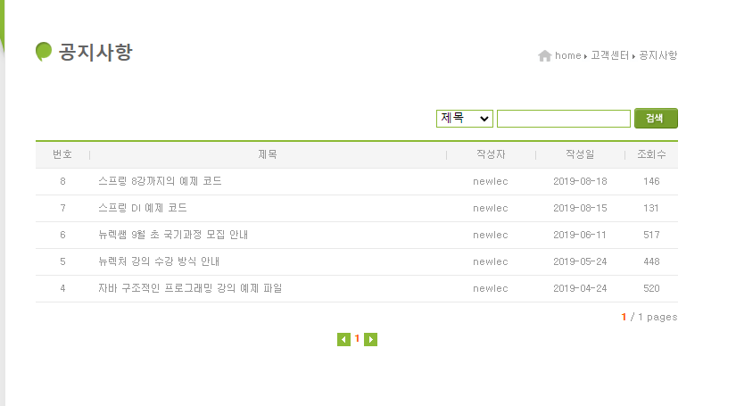 이 게시판의 번호는 정적인 html 코드로 만들어진것이다.