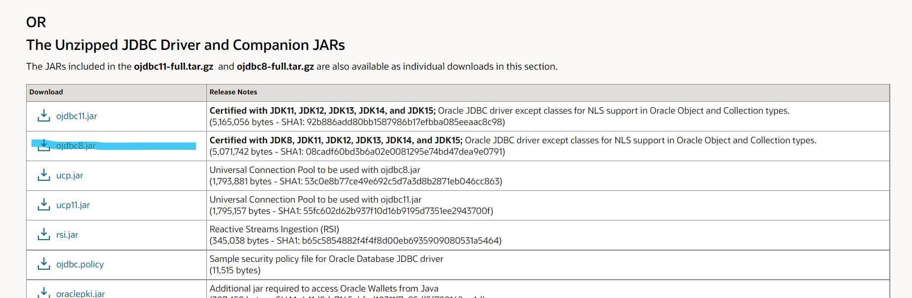 밑으로 내려서 ojdbc8.jar를 클릭해서 다운