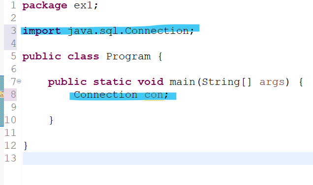jdbc가 가지고 있는 라이브러리를 써줄것이다. 대표적인것은 connection이라는 자료형을 사용할것이다. 임포트 해주기