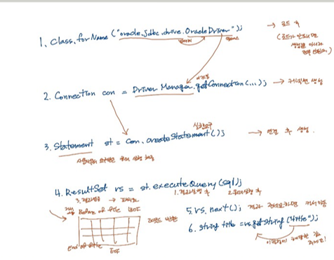이렇게 전달 된 상태에서 rs.next(); 로 결과 String title = rs.getString("title"); 을 통해서 title 컬럼에 해당하는 것을 문자열로 주세요 하면 레코드 안에서 title 컬럼에 해당하는 것을 뽑아 올 수 있는 것이고
