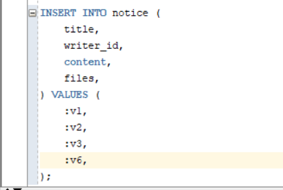 INSERT 작업시 시퀀스를 사용 할 컬럼에는 NOTICE_SQ.NEXTVAL 시퀀스명+NEXTVAL를 붙여줘야한다!!