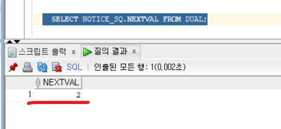SELECT 시퀀스명.NEXTVAL FROM DUAL;