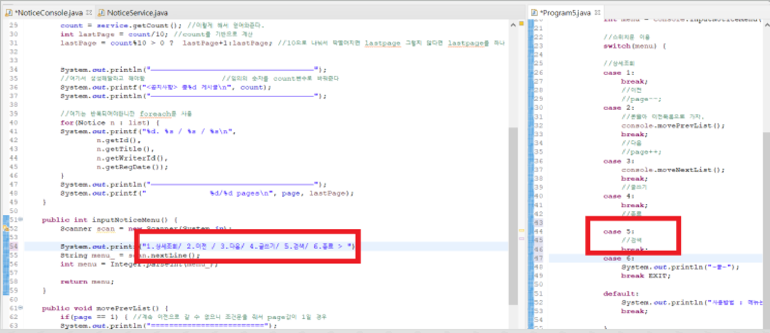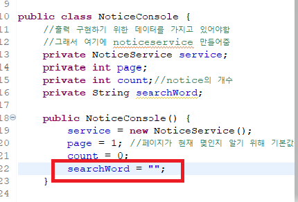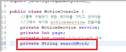 근데 이 searchWord는 혼자 쓰는것이 아니라 목록을 조회 할 때 printnoticelist가 쓸 내용이다.