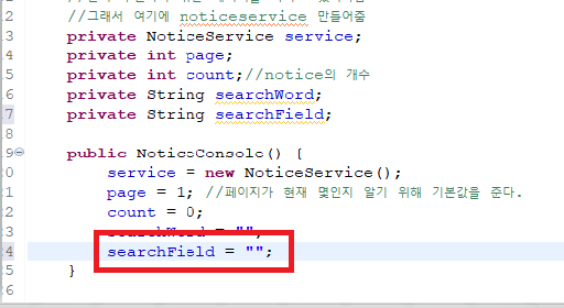 그래서 리스트를 가져 올 때 printnoticelist에 다른 메서드와 공유해야하는 정보를 가지고 있어야 하기 때문에 멤버 변수로 생성 해줘야한다. 마우스를 클릭해서 멤버로 생성 해준다.