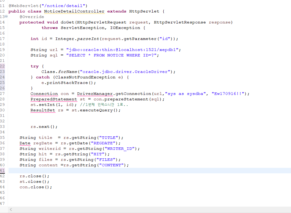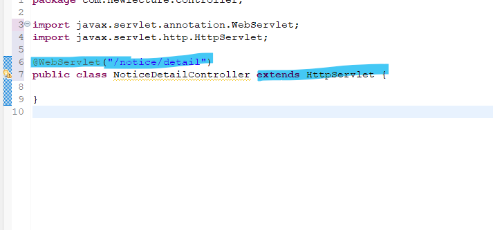 만들어진 클래스에 extends를 이용해서 httpservlet을 상속 받아 주고 webservlet으로 경로를 지정 해 준다.