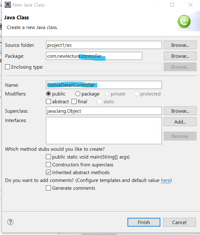 controller 패키지와 클래스 생성