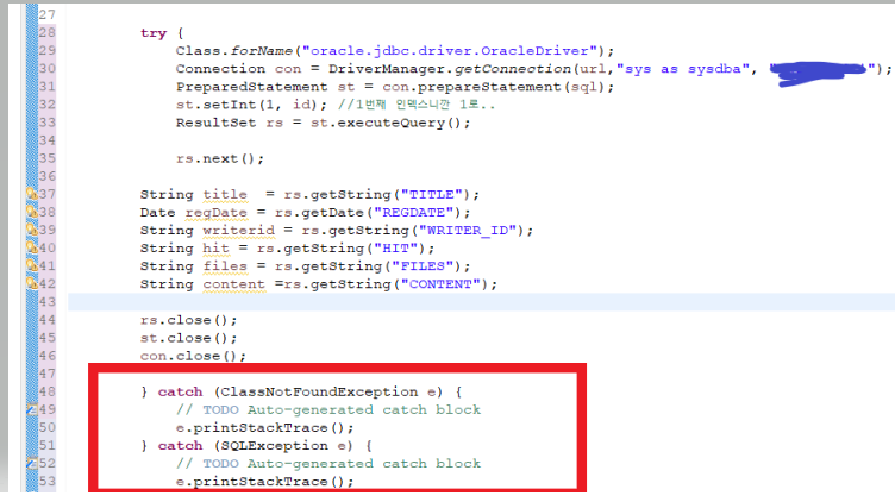 그래도 여전히 빨간줄이 떠 있는데 우선 classforname를 예외처리 해 준다.