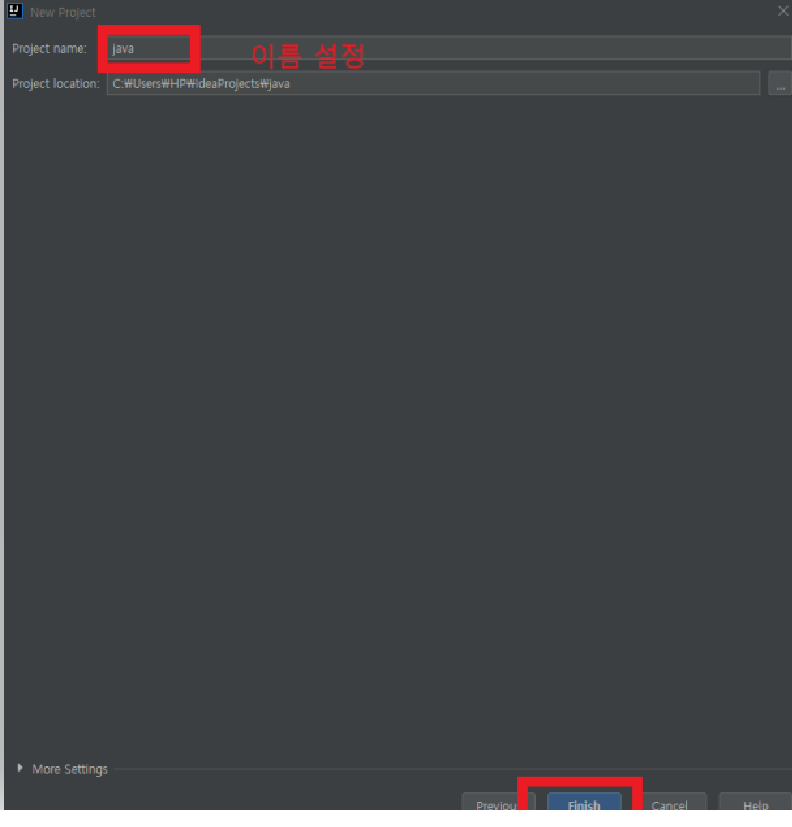 이름 설정 후 finish