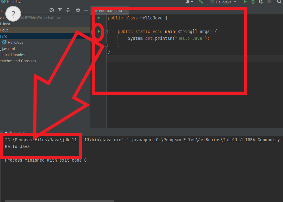 코드 작성 후 좌측에 초록색 삼각형을 눌러주면
