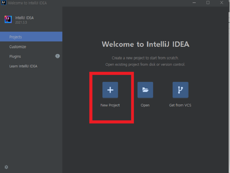new project 클릭