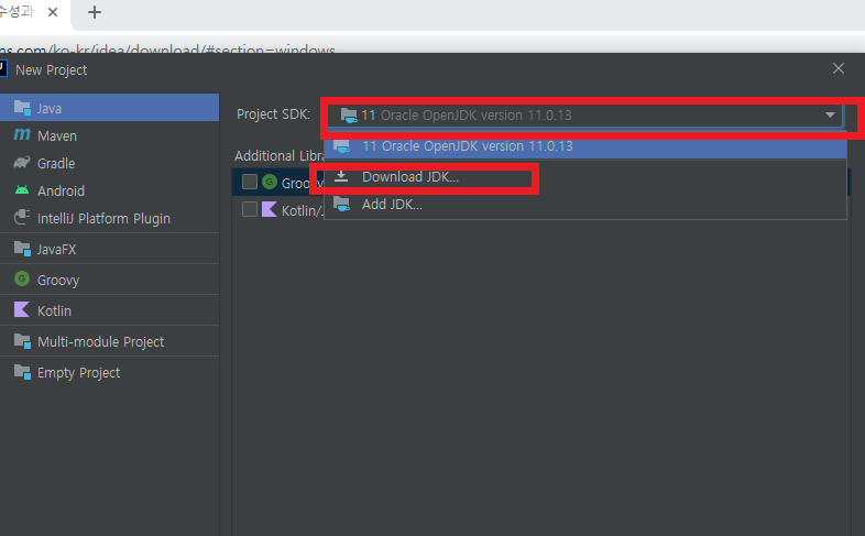 (JDK 11 버전으로 해야한다!!!!!!!!!!!!)